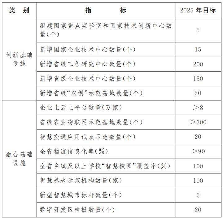 到2025年,基本建成高速泛在、智能敏捷、综合集成、安全可信的新型基础设施体系,“感—传—存—算—用”综合数字能力显著增强,经济社会各领域数字化、网络化、智能化发展水平大幅提升,创新基础设施水平稳步增强,有力支撑全省高质量跨越式发展。