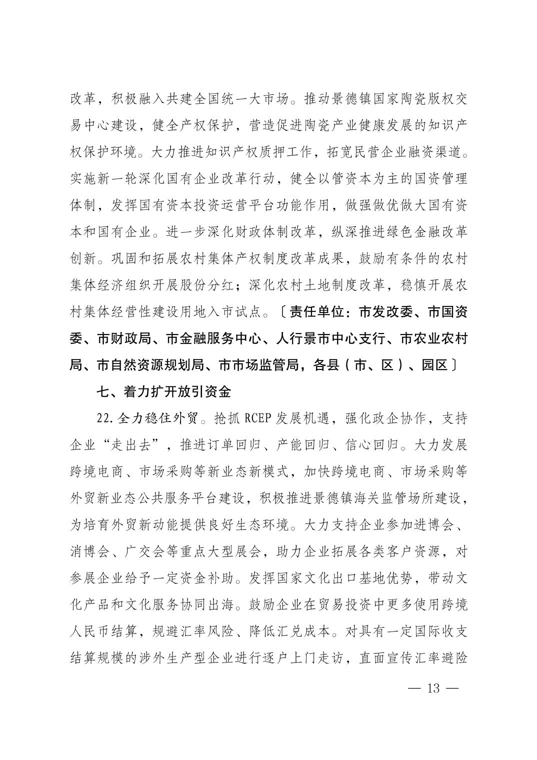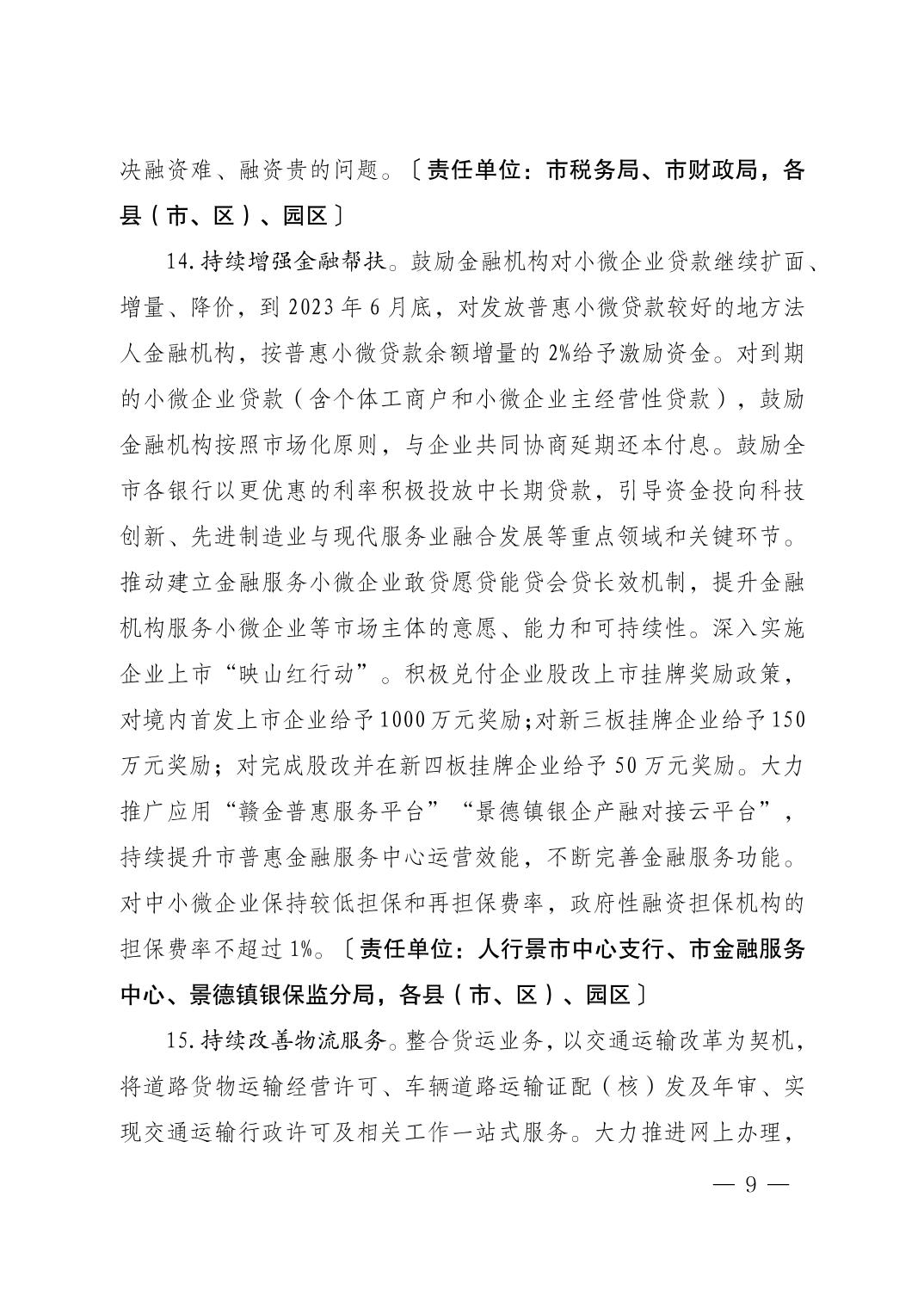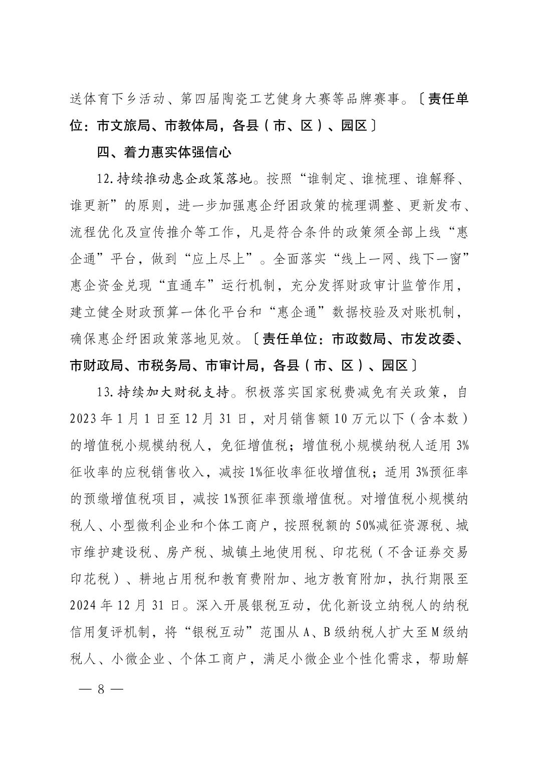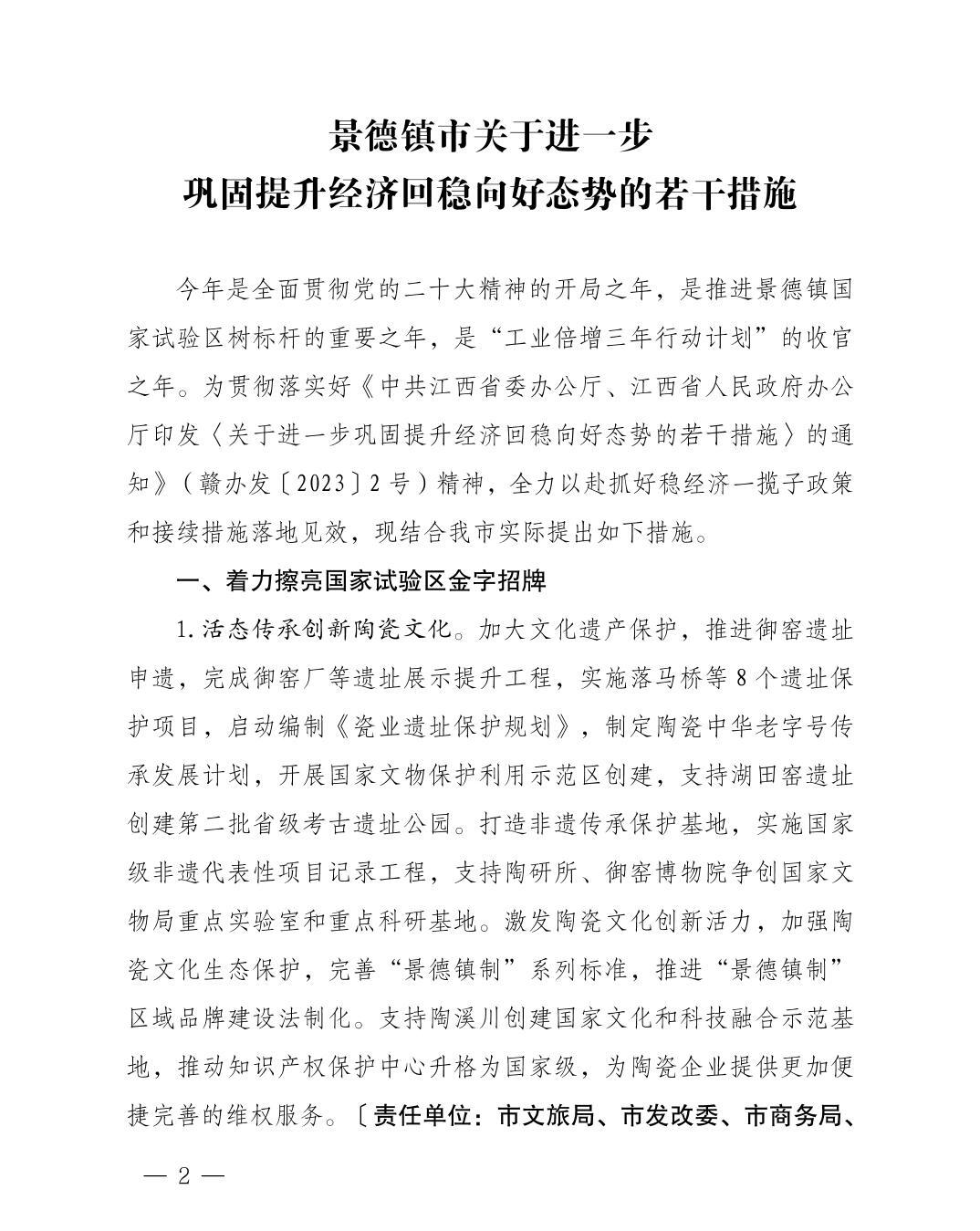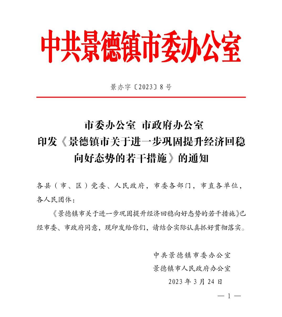 市委办景办字〔2023〕8号关于印发《景德镇市关于进一步巩固提升经济回稳向好态势的若干措施》的通知