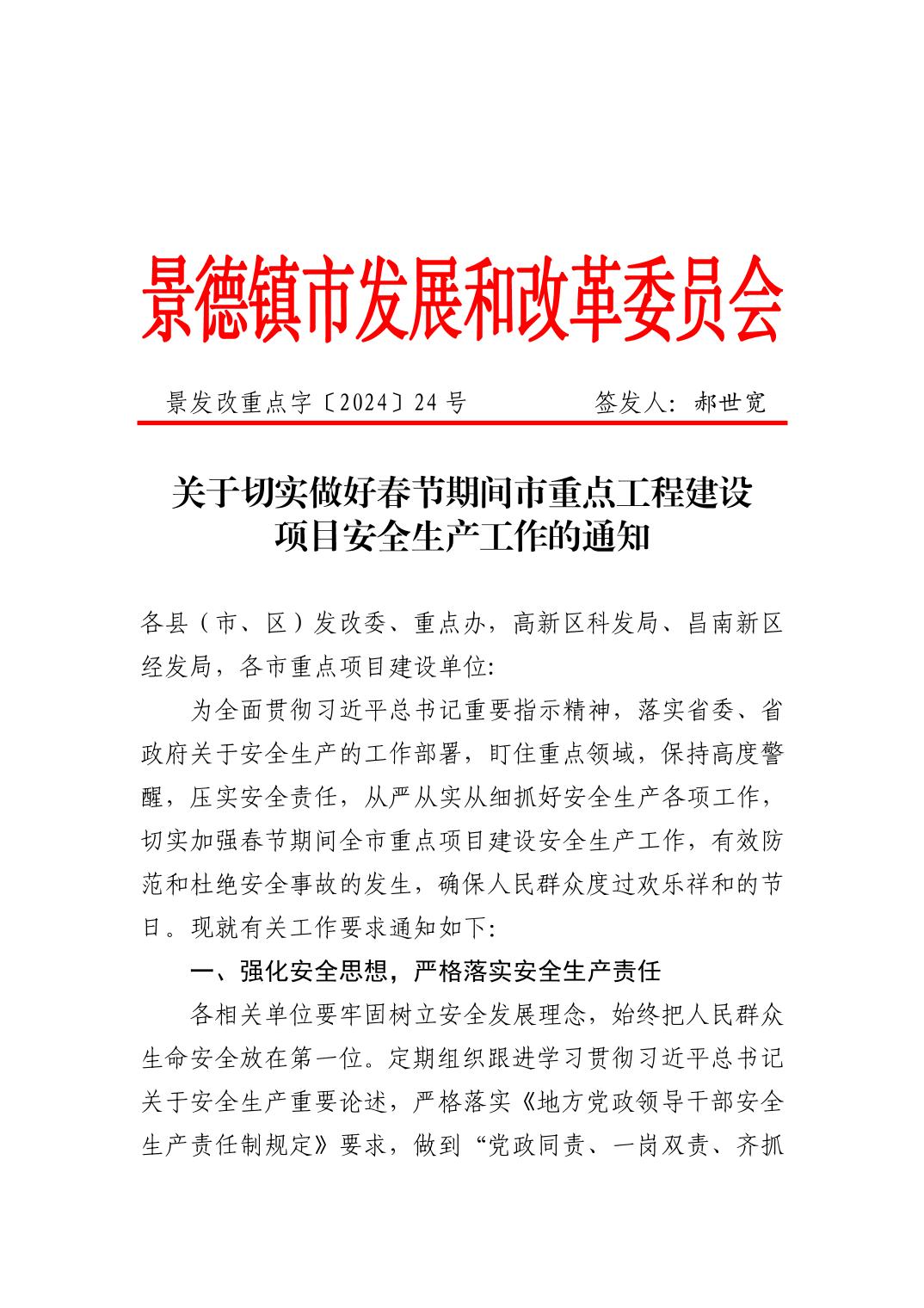 关于切实做好春节期间市重点工程建设项目安全生产工作的通知