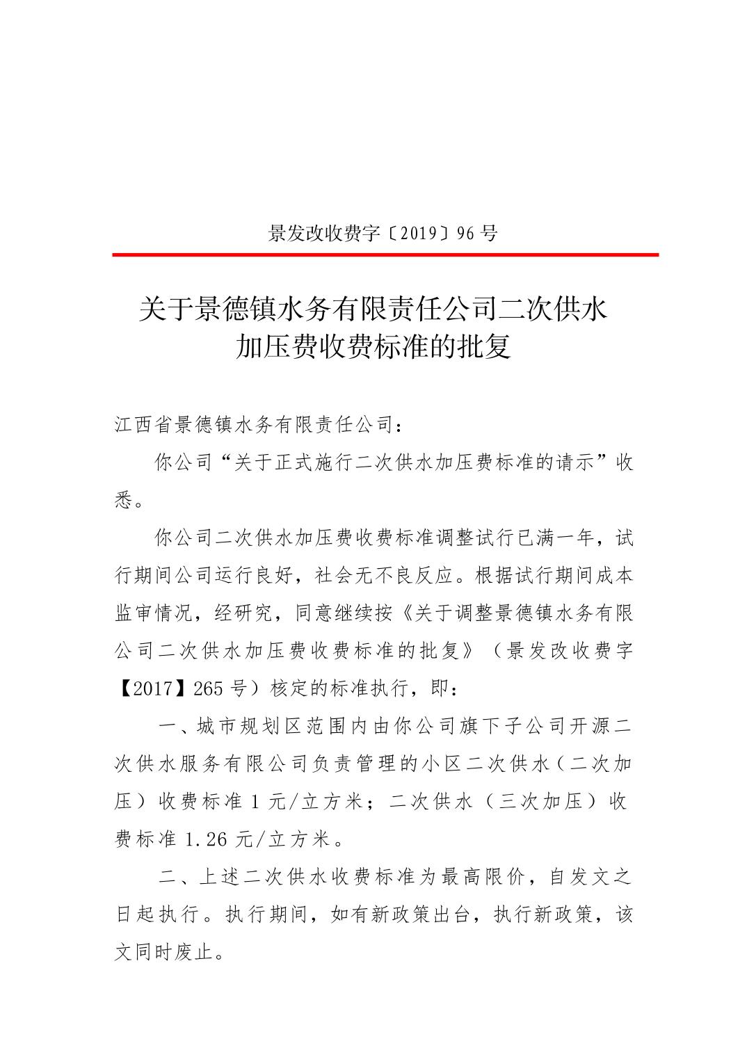 关于景德镇水务有限责任公司二次供水加压费收费标准的批复.pdf