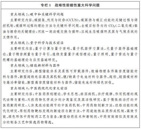 以实现重大科学问题的原创性突破为目标,结合我省发展战略需求和区域特色,集聚国内外高端人才,培养一批国内外同行认可的领军科学家和高水平学科带头人,新增若干国家级、省部级重点实验室和重点学科,实现基础研究成果“从0到1”的新突破,推动我省基础研究跨越式发展。重点支持碳中和关键科学问题、量子信息科学、储能新材料和中医药等方面的前瞻性重大科学问题研究。