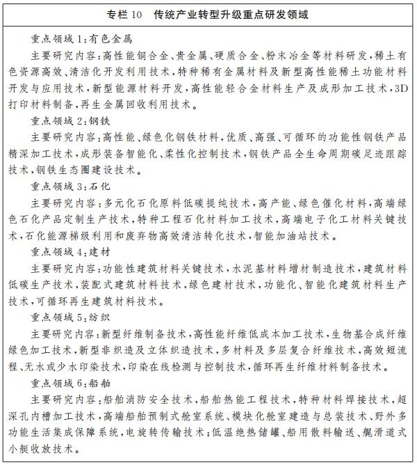 聚焦有色金属、钢铁、石化、建材、纺织及船舶等传统产业技术优势深耕细作,通过工艺创新、技术创新和市场创新等手段,植入创新元素大力开发高端产品,提高传统产业技术附加值,推动制造业转型升级,加快传统产业向高端化转型。