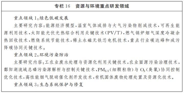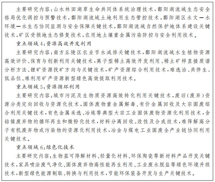 围绕生态文明建设目标任务,重点开展绿色低碳发展、环境污染防治、生态系统保护与修复和资源高效开发循环利用等领域的关键技术攻关和应用示范,为加快美丽江西建设提供科技支撑。