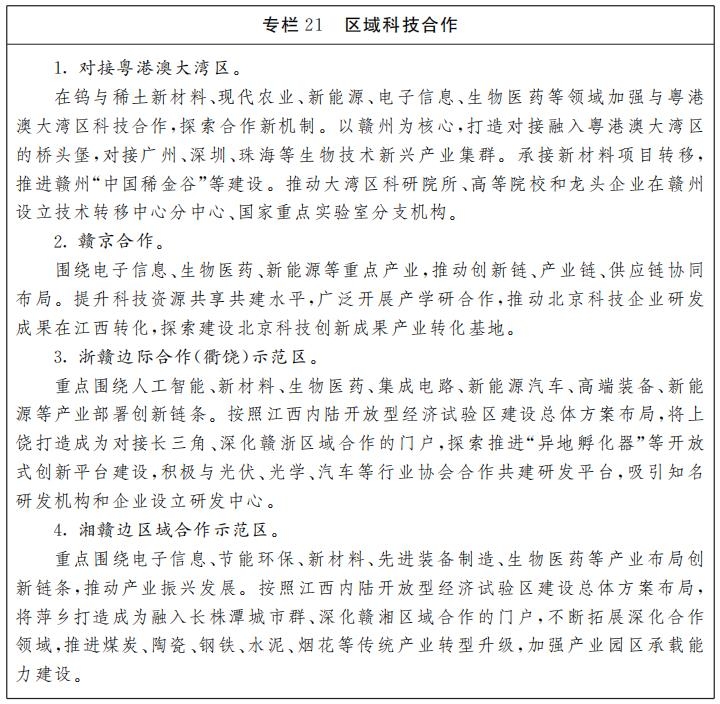 江西省“十四五”科技创新规划