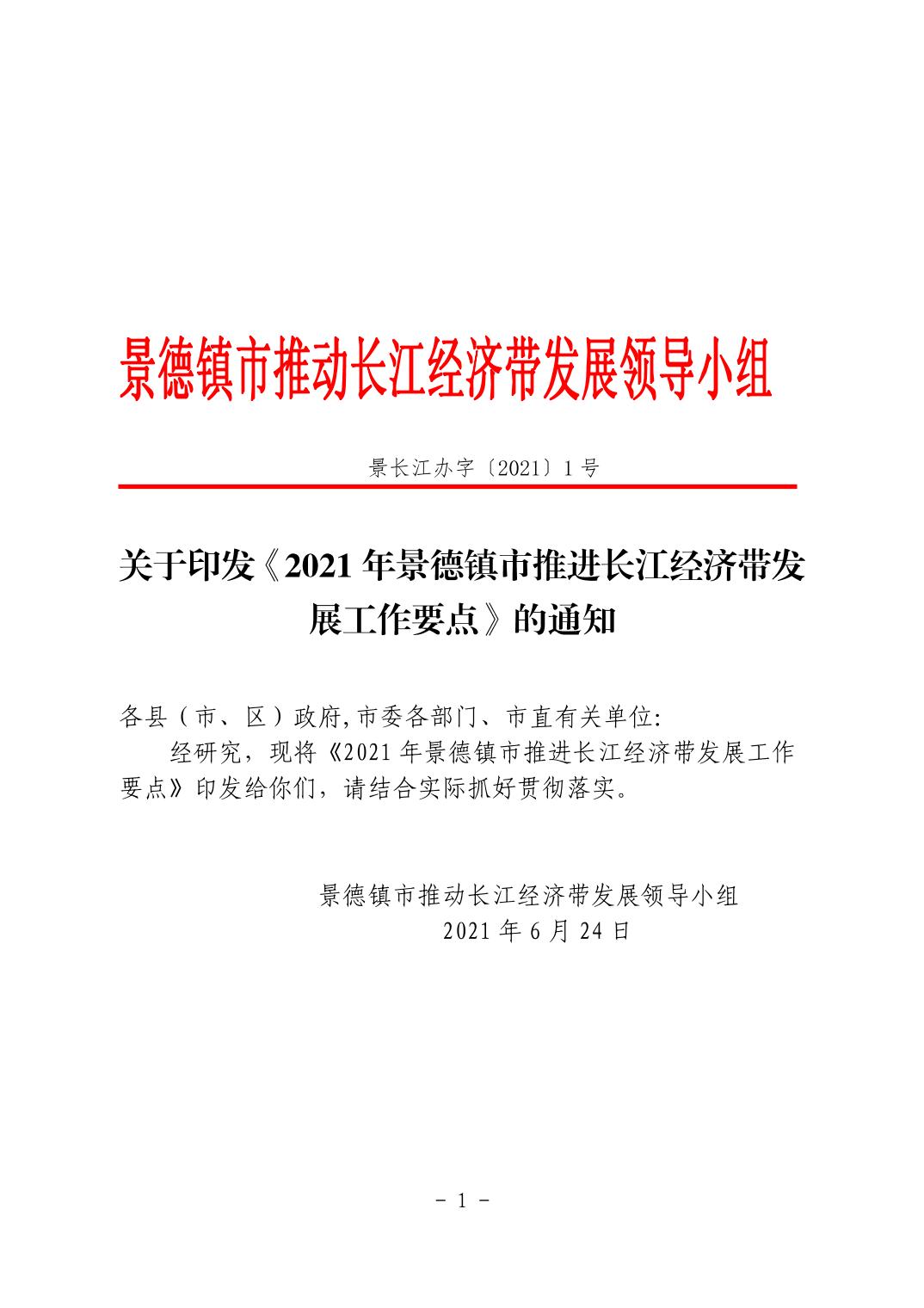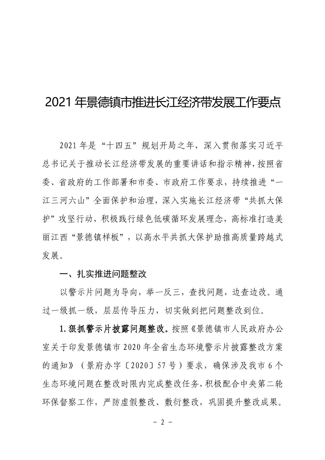 景长江办字〔2021〕1号2021年景德镇市推进长江经济带发展工作要点(正式文)