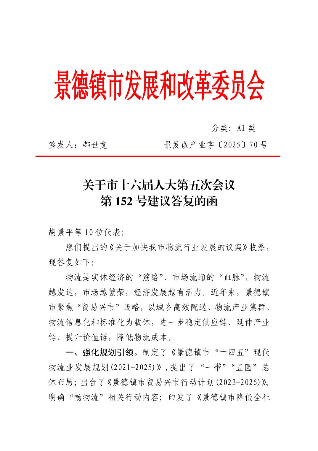 关于市十六届人大第五次会议第152号建议答复的函