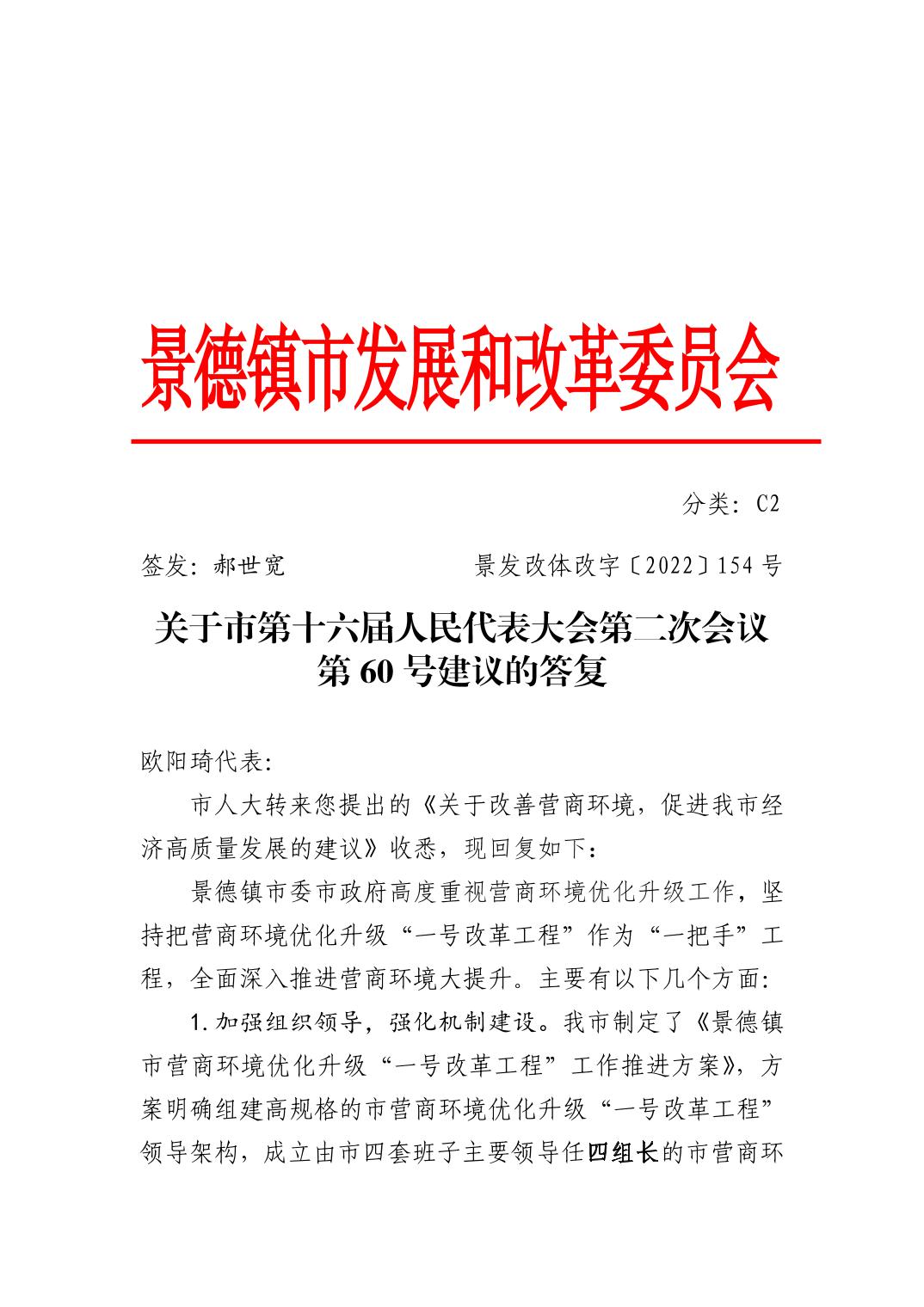 关于市第十六届人民代表大会第二次会议第60号建议的答复