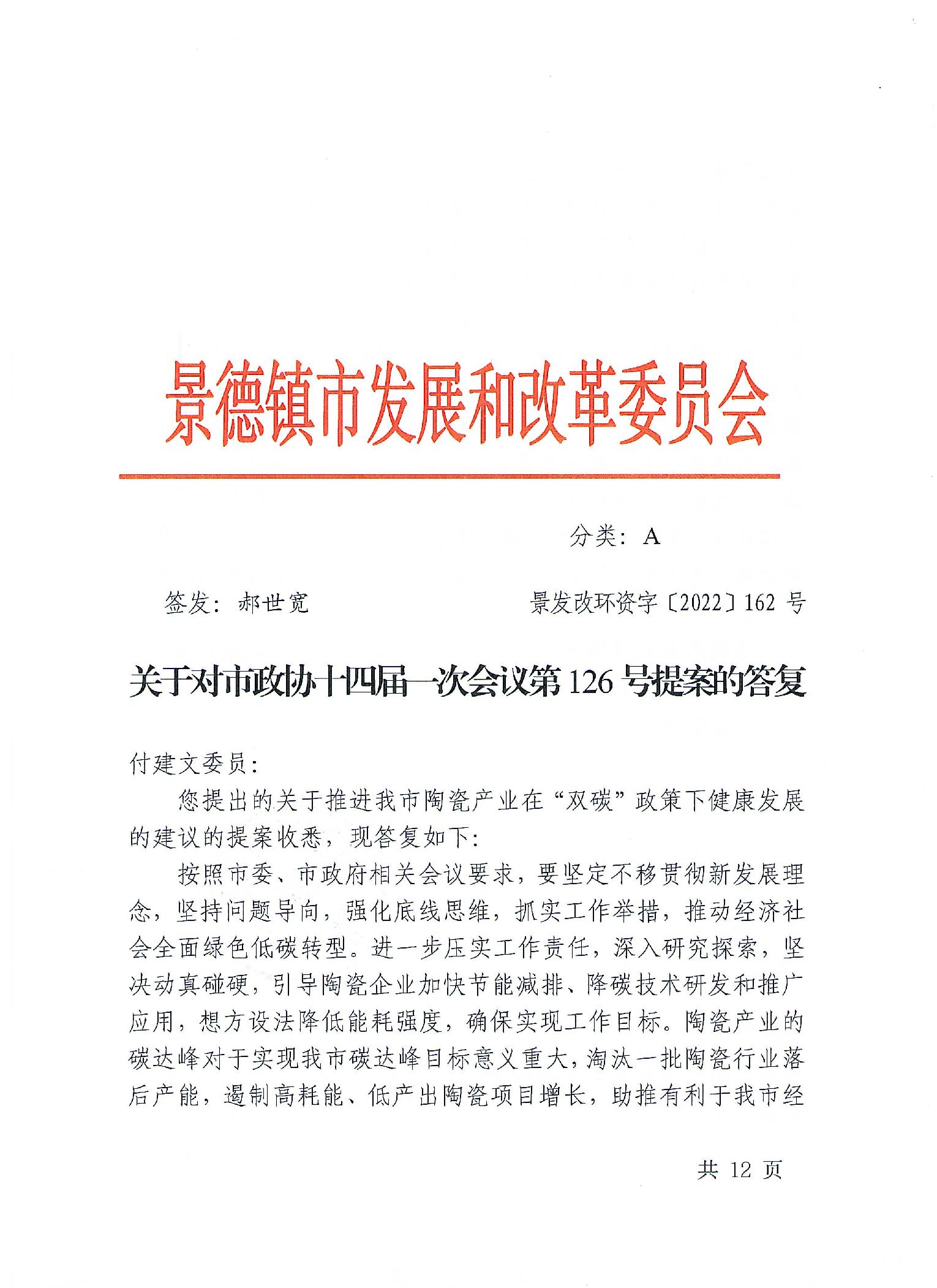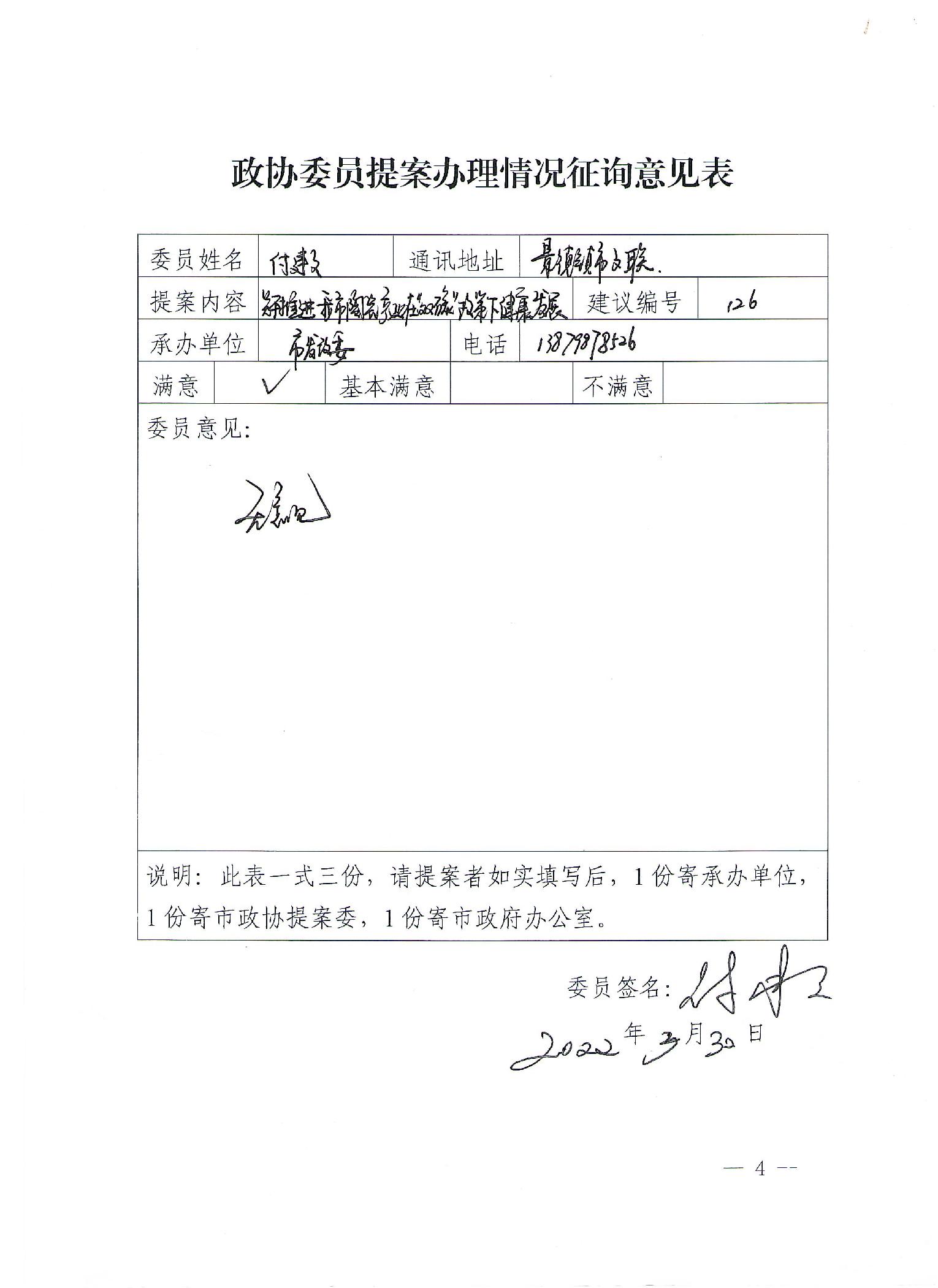 关于对于市政协十四届一次会议第126提案的答复-征询意见表