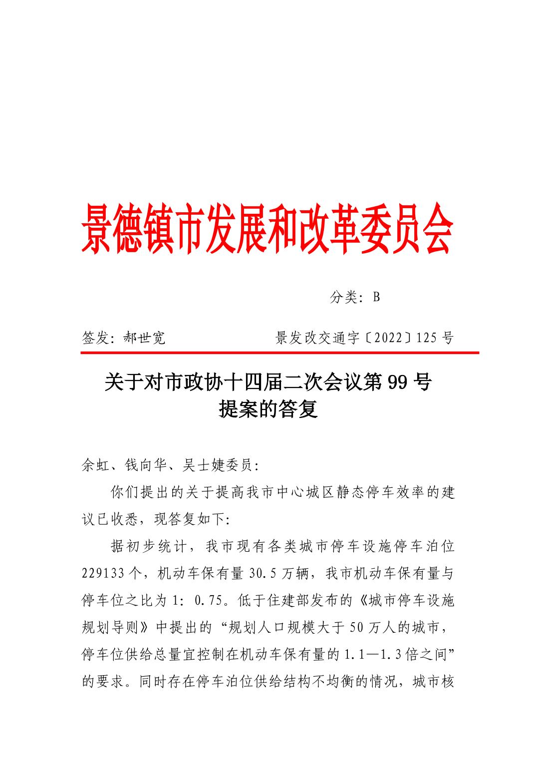 关于对市政协十四届二次会议第99号提案的答复