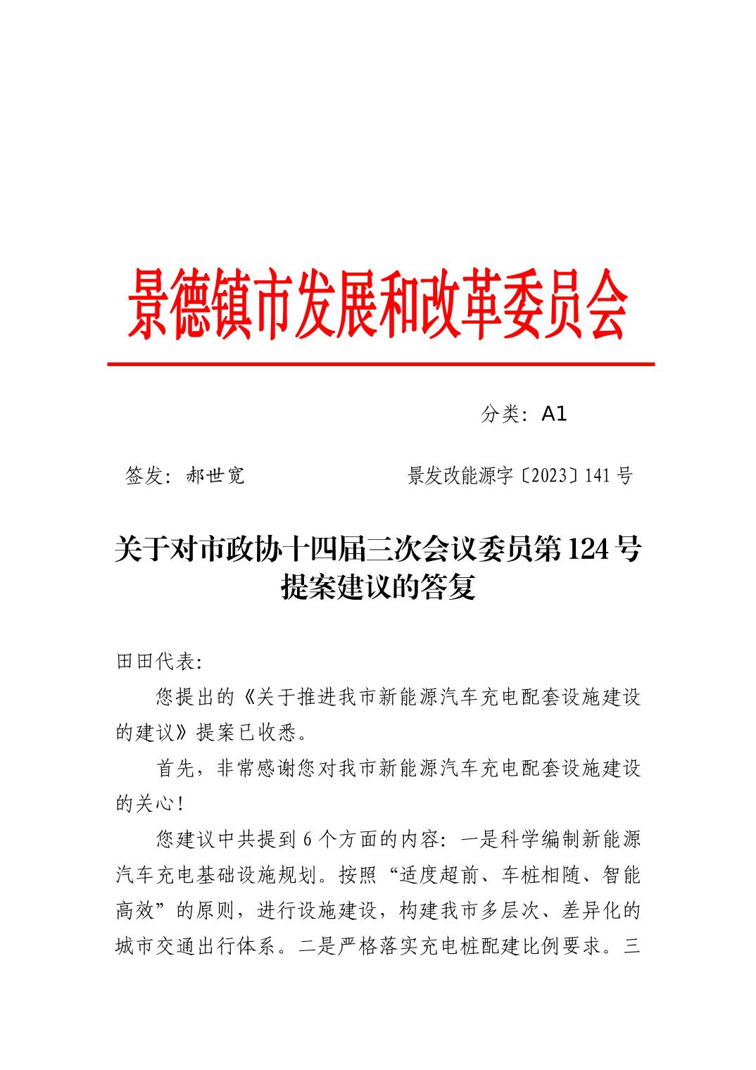 关于对市政协十四届三次会议委员第124号提案建议的答复
