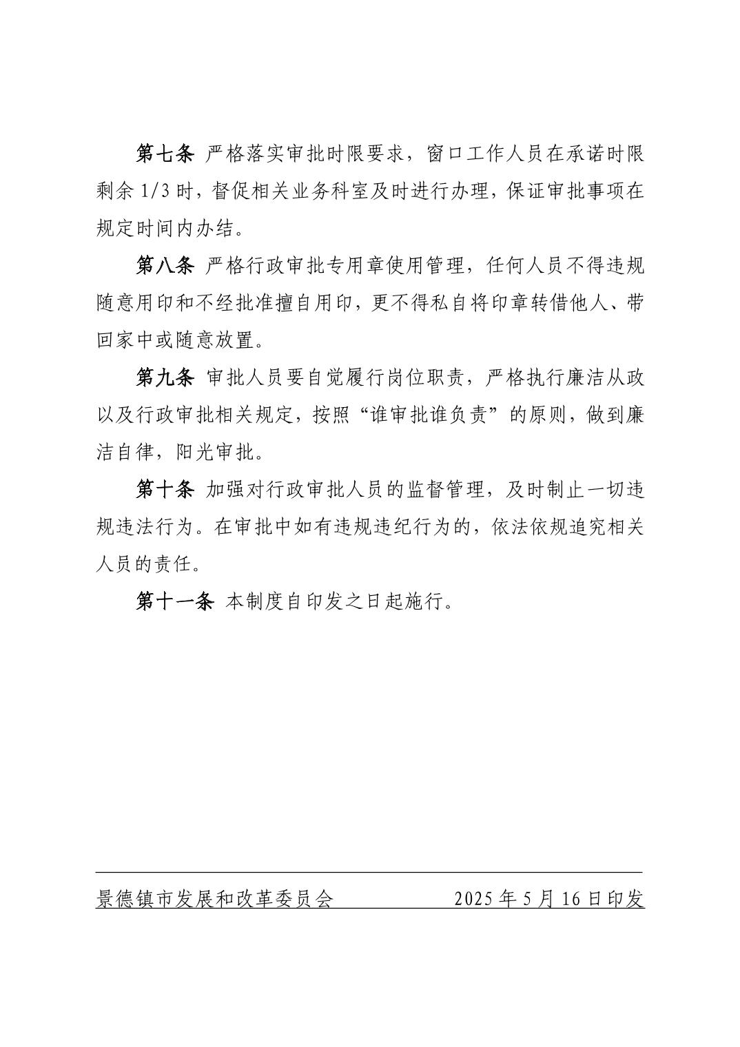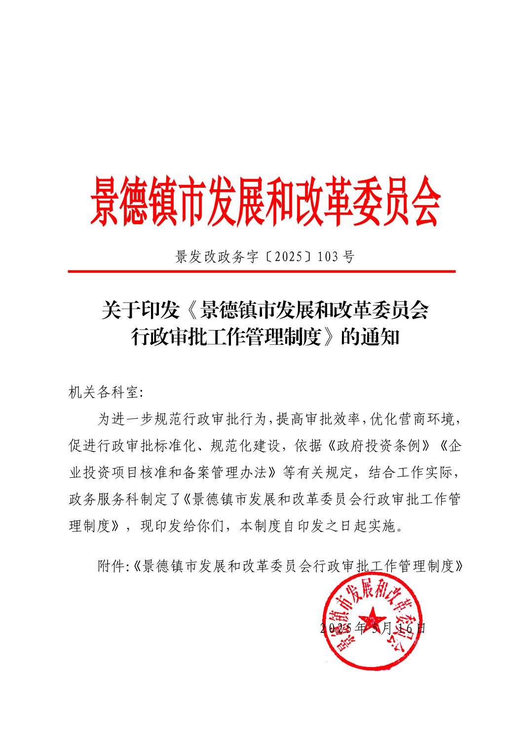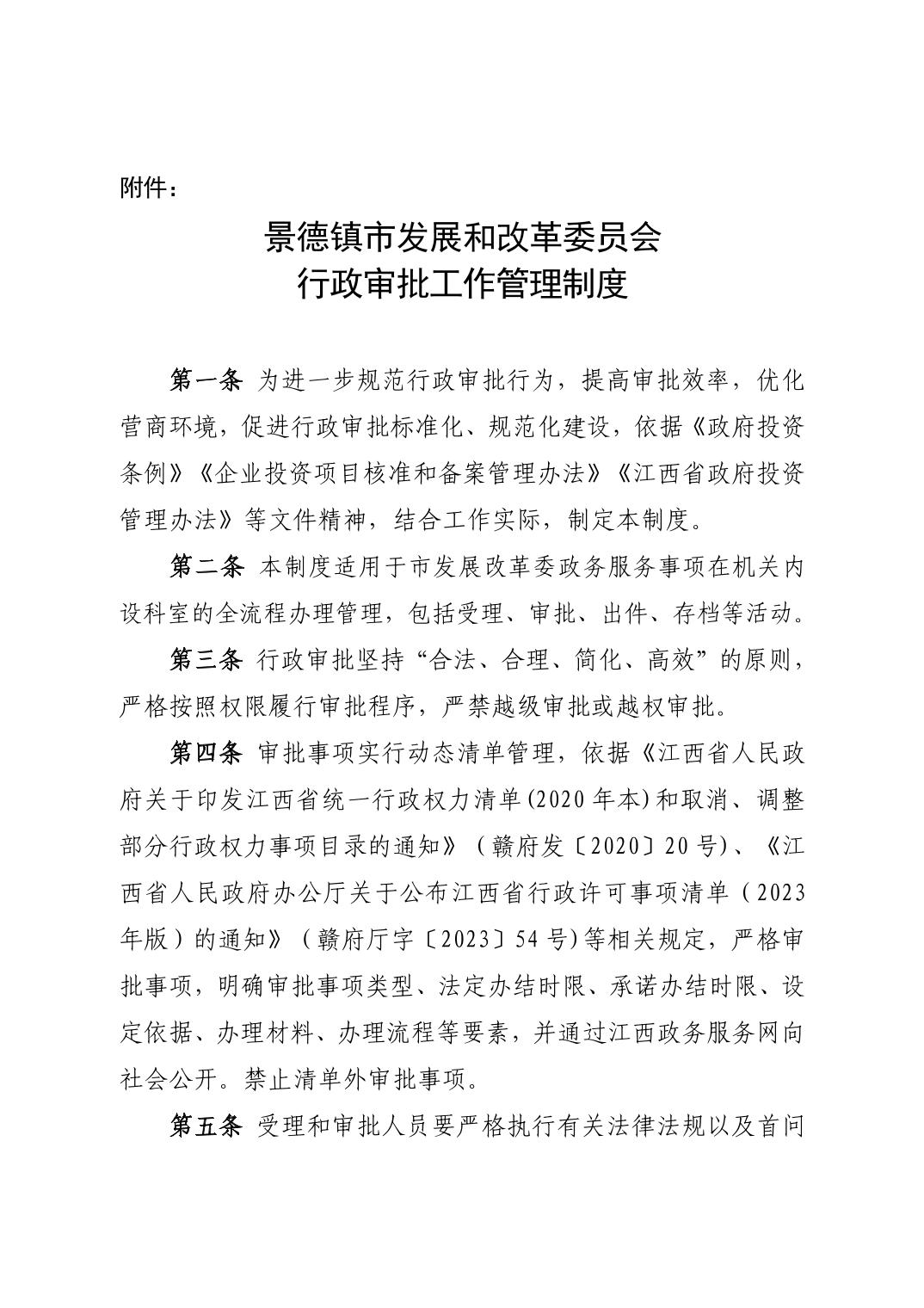 关于印发《景德镇市发展和改革委员会行政审批工作管理制度》的通知