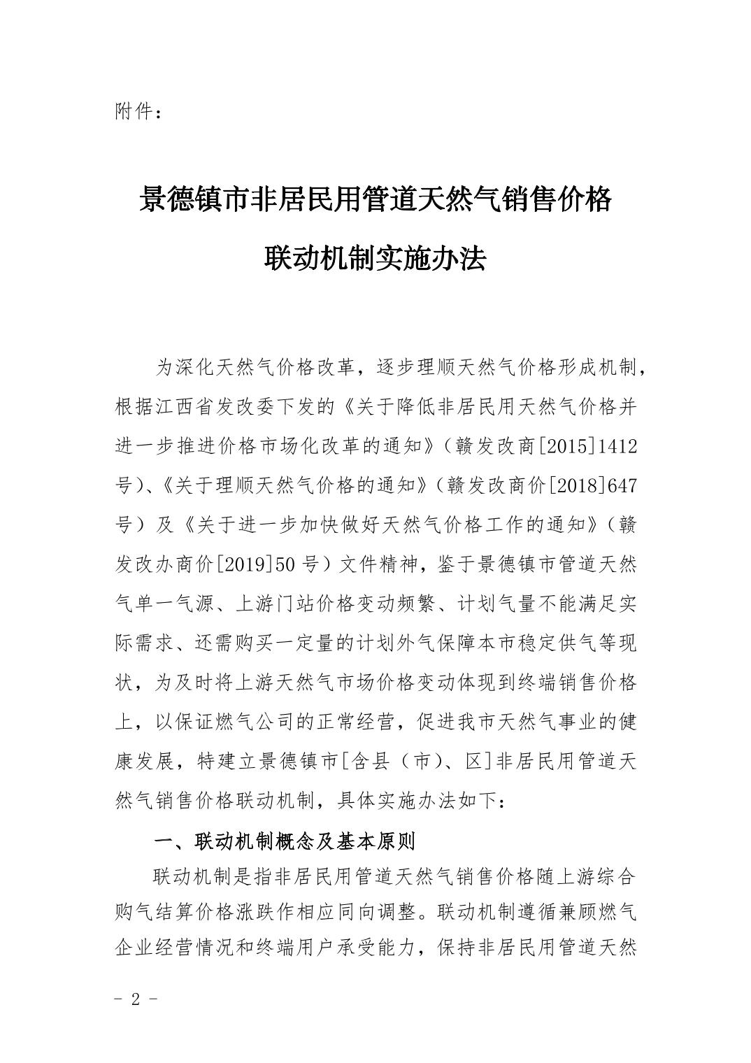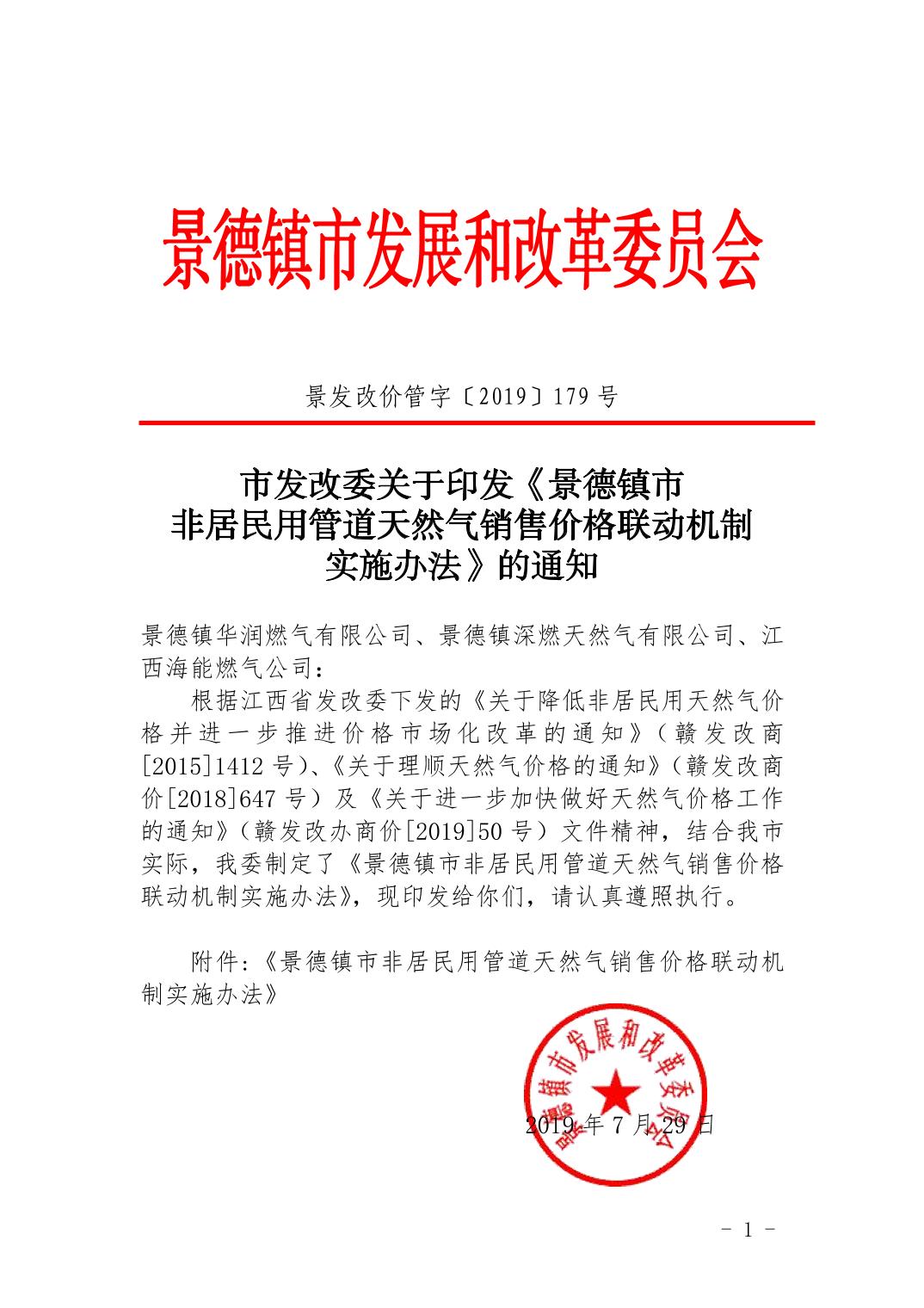 景发改价管字[2019]179号市发改委关于印发《景德镇市非居民管道天然气销售价格联动机制实施办法》的通知.docx