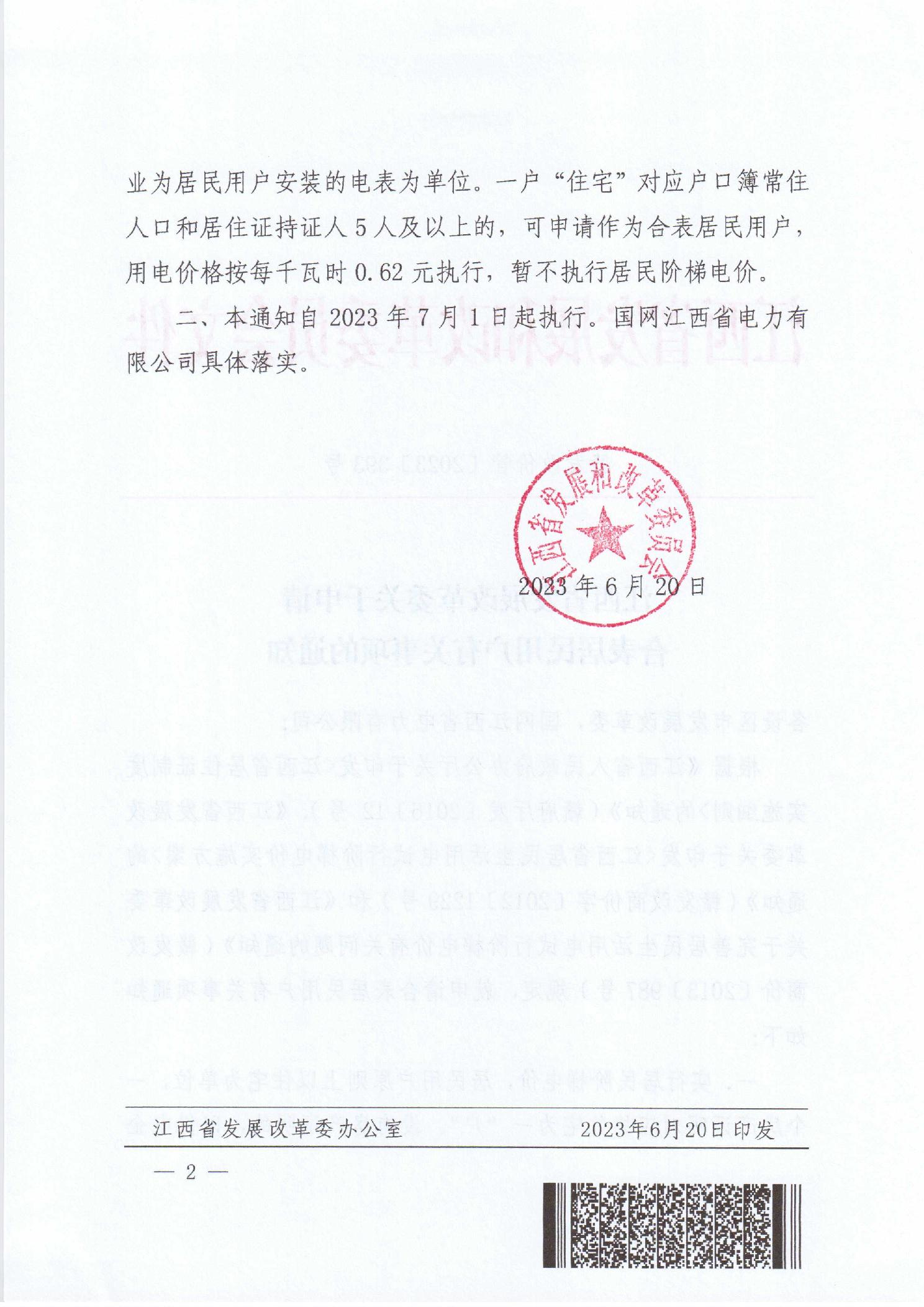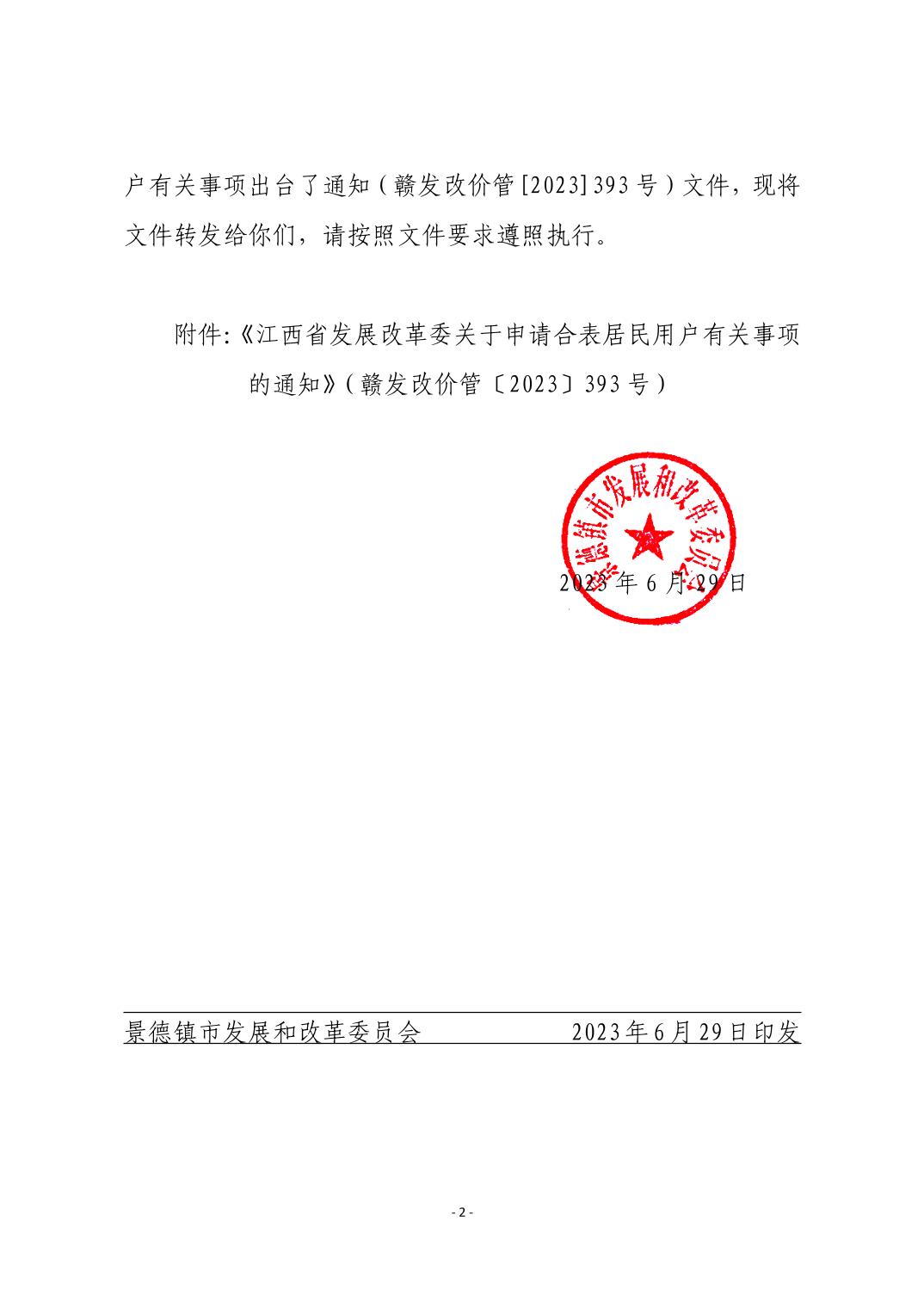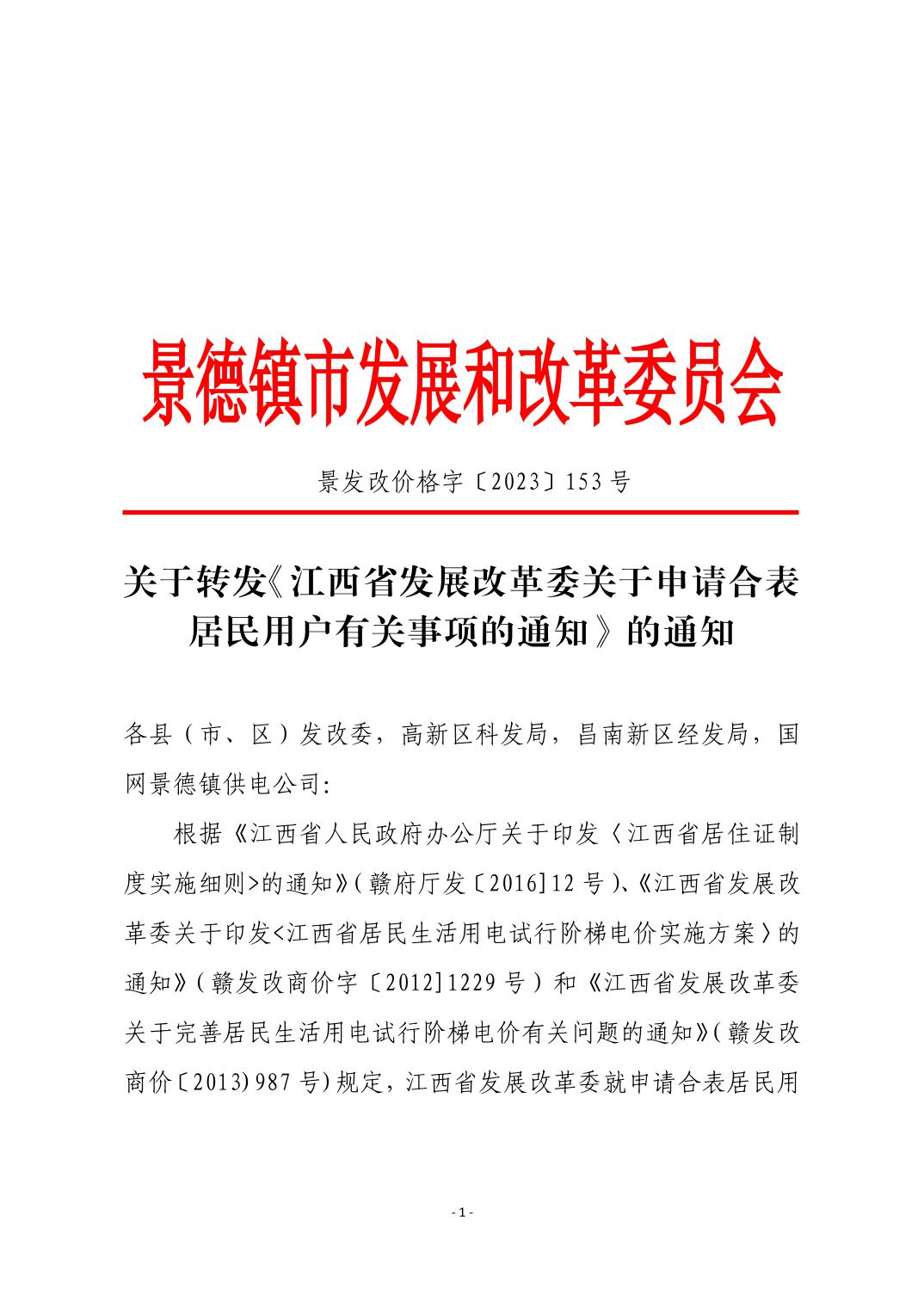 关于转发《江西省发展改革委关于申请合表居民用户有关事项的通知》的通知