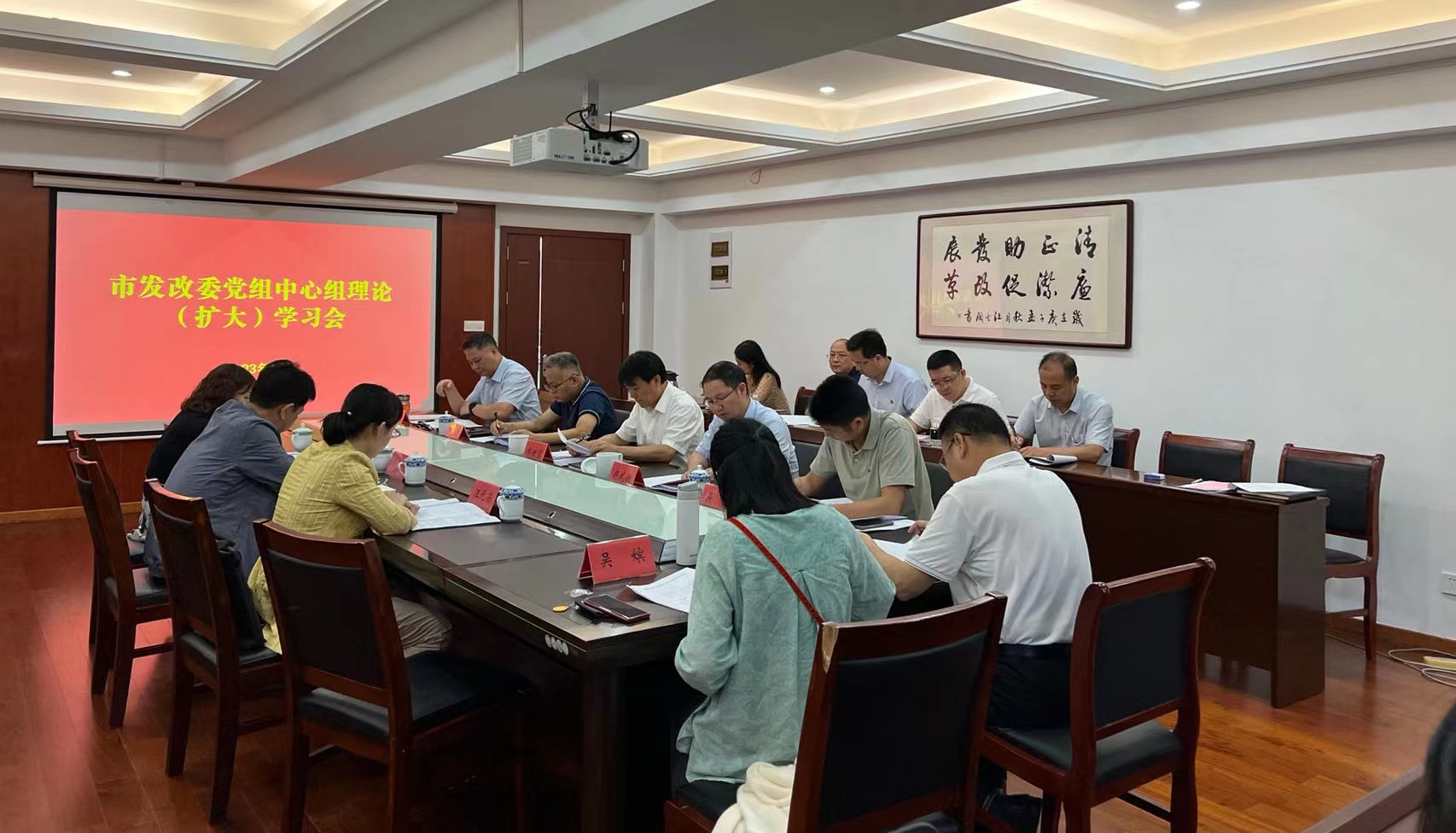 6月25日,市发改委召开党组理论学习中心组学习会,委党组书记、主任郝世宽主持会议,市直机关党组(党委)理论学习中心组学习列席旁听第十八组组长冯晖带队到会指导,委副县级以上领导干部及各科室负责同志参加会议。
