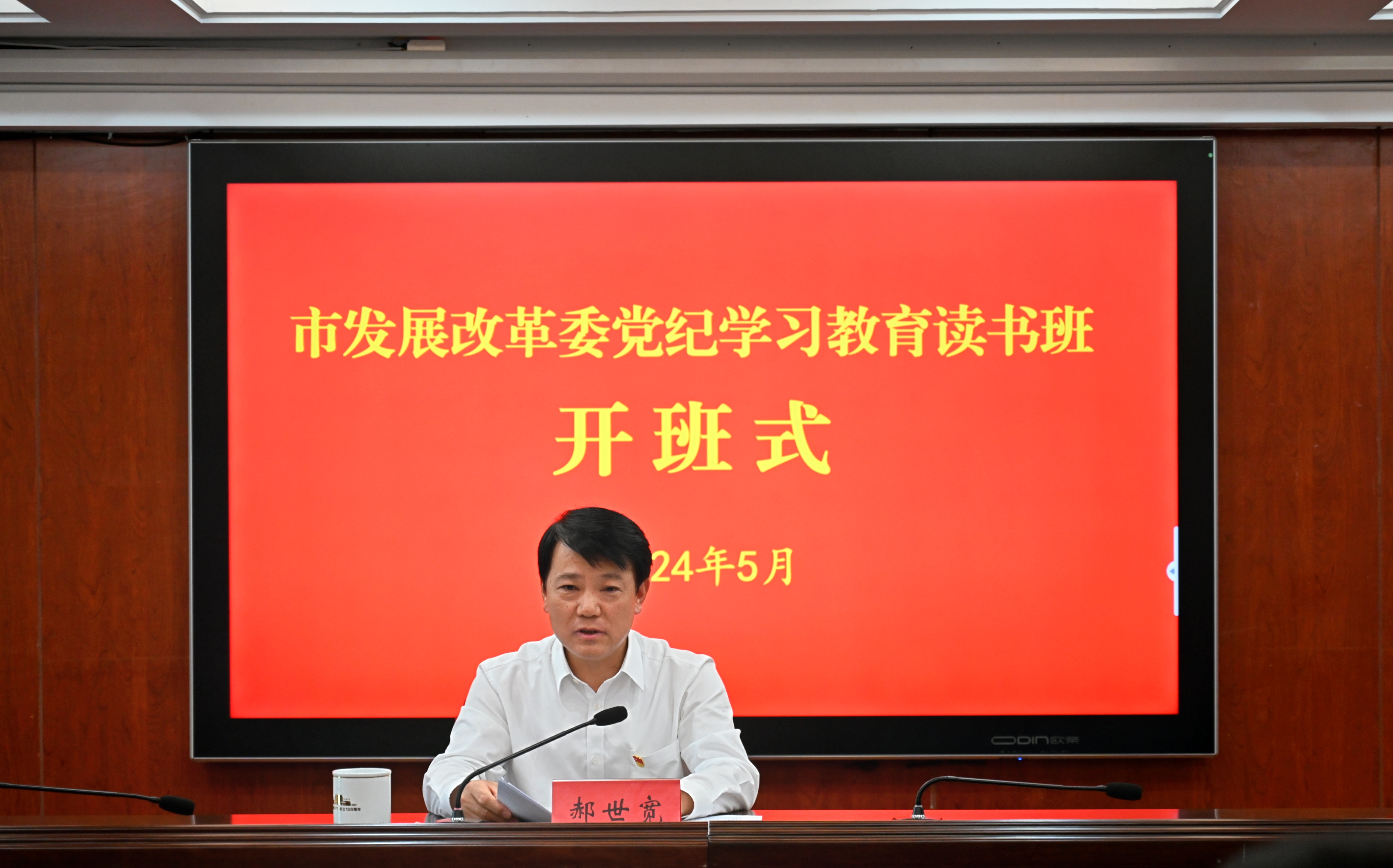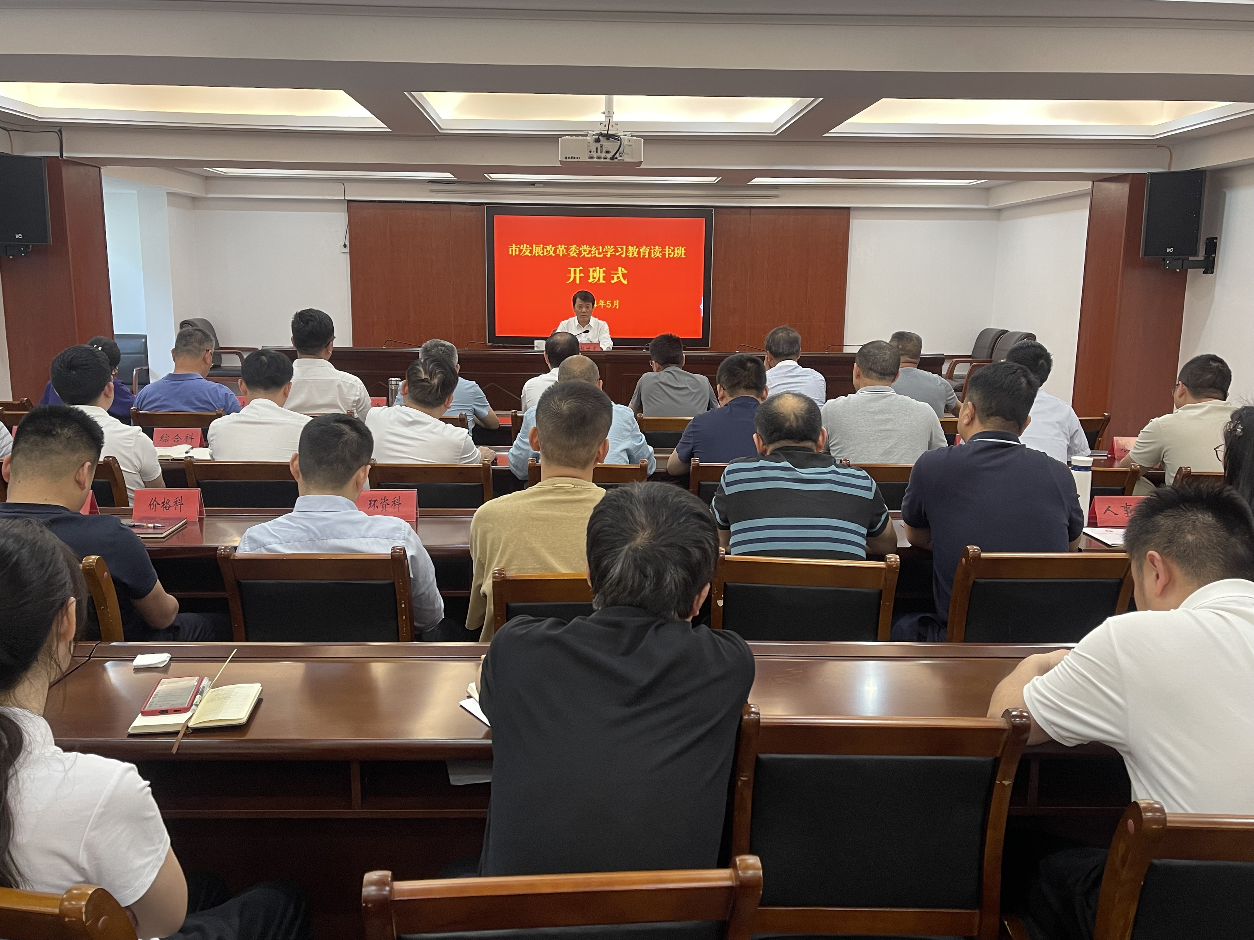 5月17日,市发展改革委召开党纪学习教育读书班开班式。市发改委党组书记、主任郝世宽主持会议并作专题党课报告。委领导班子成员、副县级以上领导干部,总经济师、机关各科室及委属单位科级党员干部参加会议。
