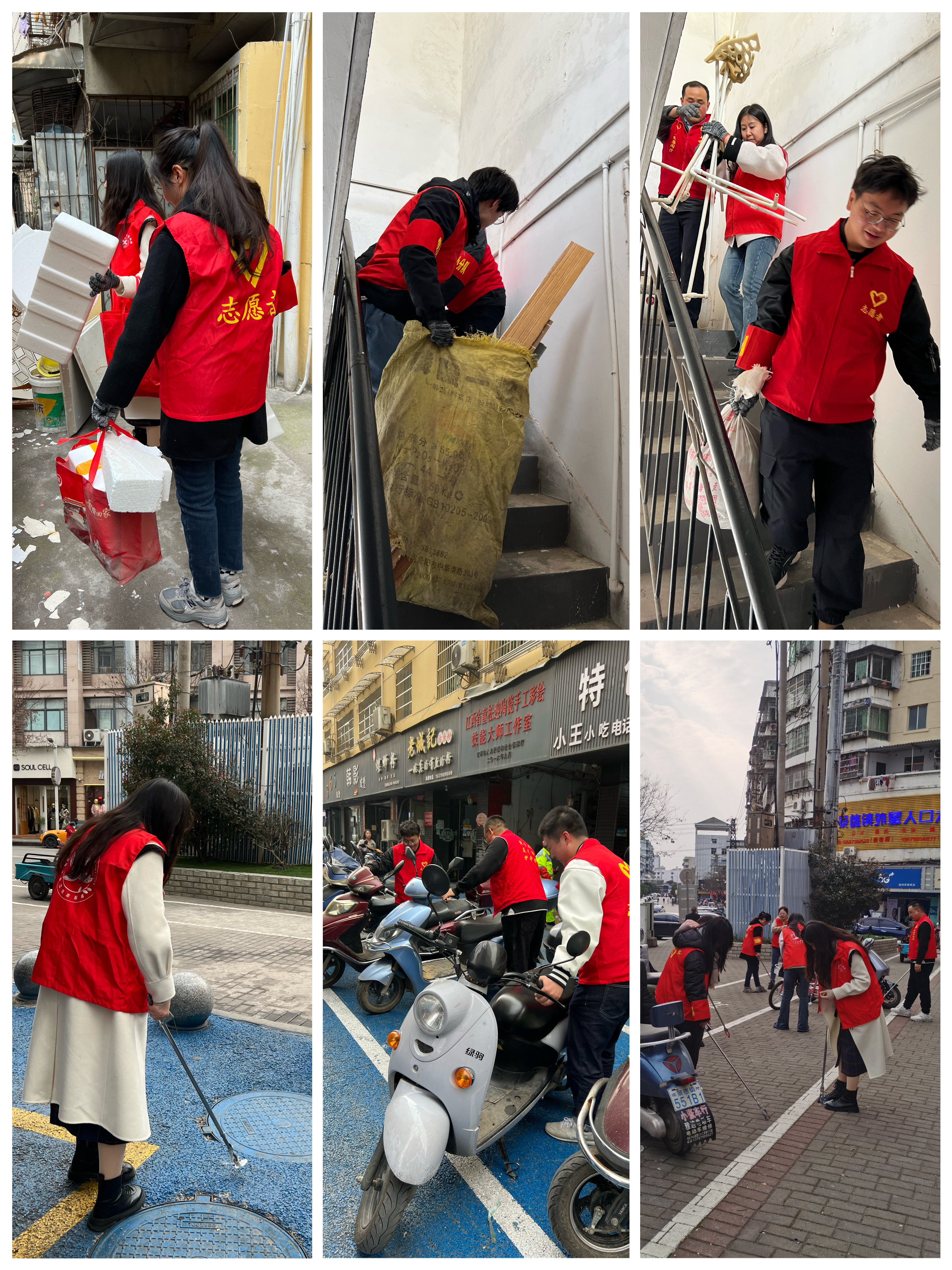 下午党员志愿者服务队走进共建社区(赛跑坦社区)开展志愿活动。活动现场,一件件红马褂在社区穿梭,党员们用饱满的精神风貌纷纷拿起镊子、铲子、垃圾袋,对社区楼栋和街道环境卫生进行清理,捡拾塑料袋、卫生纸、烟头等各种垃圾,搬移乱停乱放的电动车入线等,按下了环境卫生整治“美颜键”,擦亮了文明社区“高颜值”。