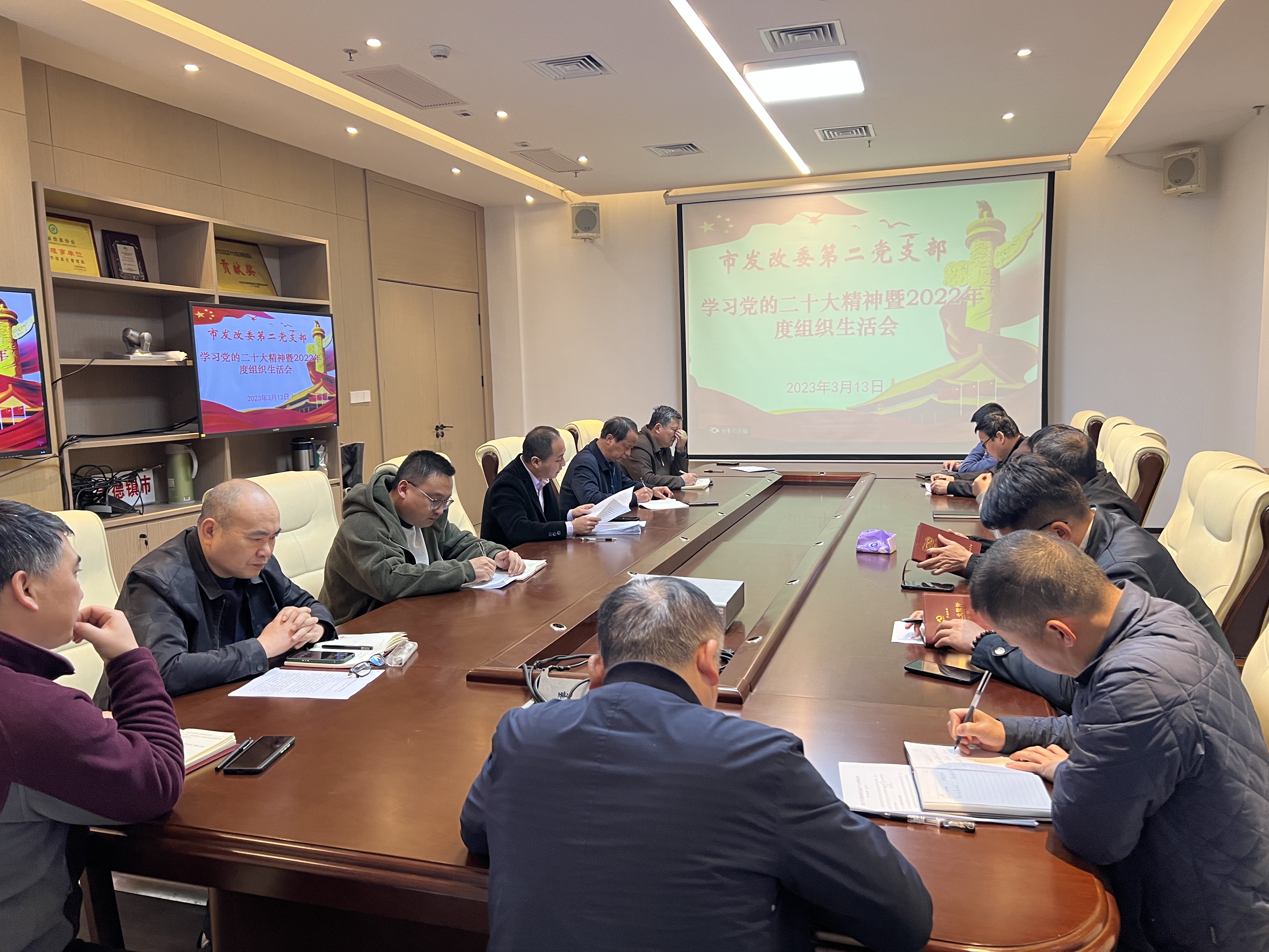 3月13日上午,市发改委第二党支部召开学习党的二十大精神暨2022年度组织生活会。市发改委党组成员、副主任吴斌到会指导,市发改委党支部全体在职党员参加会议,支部书记俞庆主持会议。