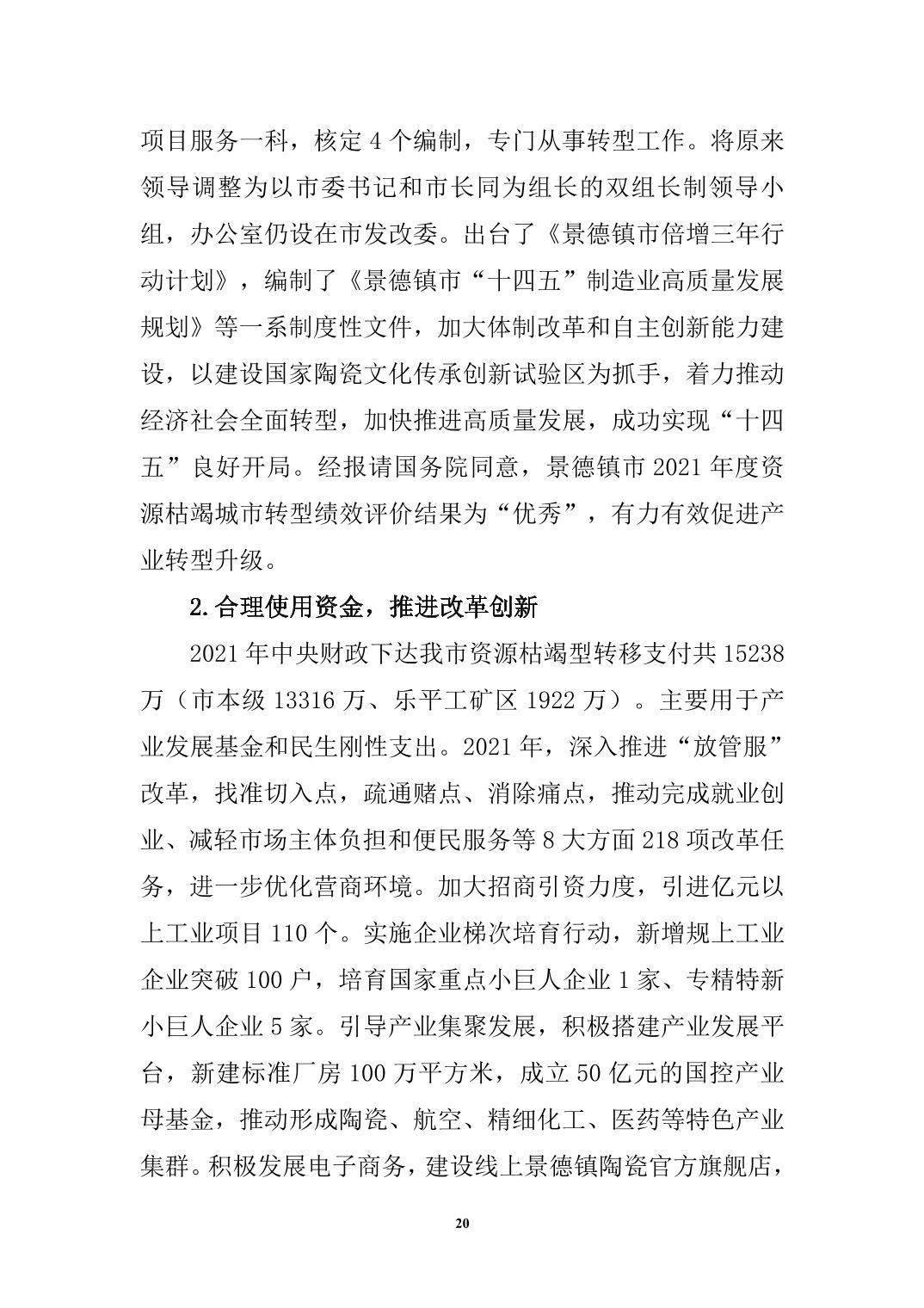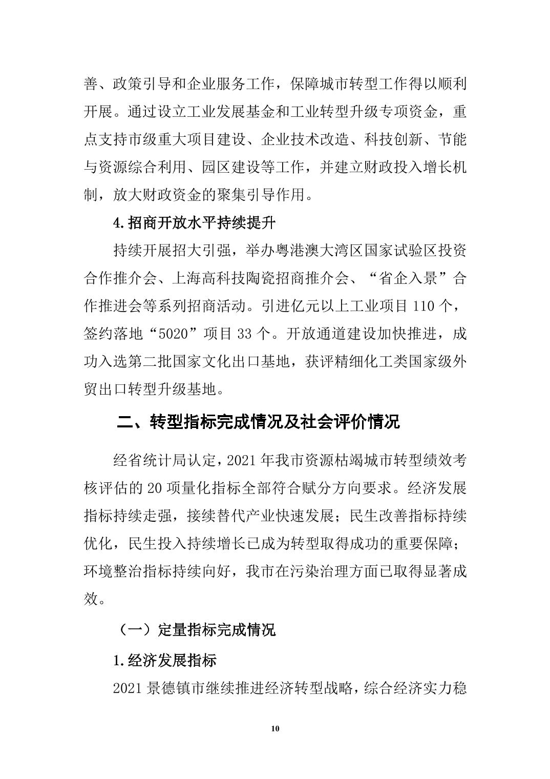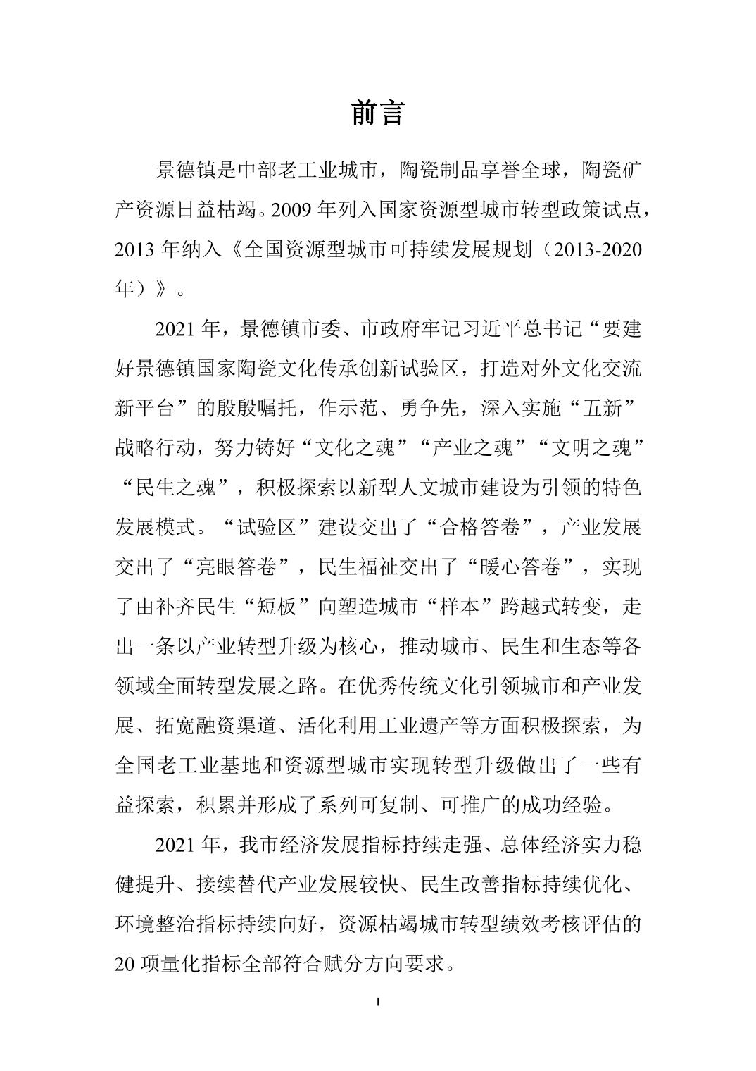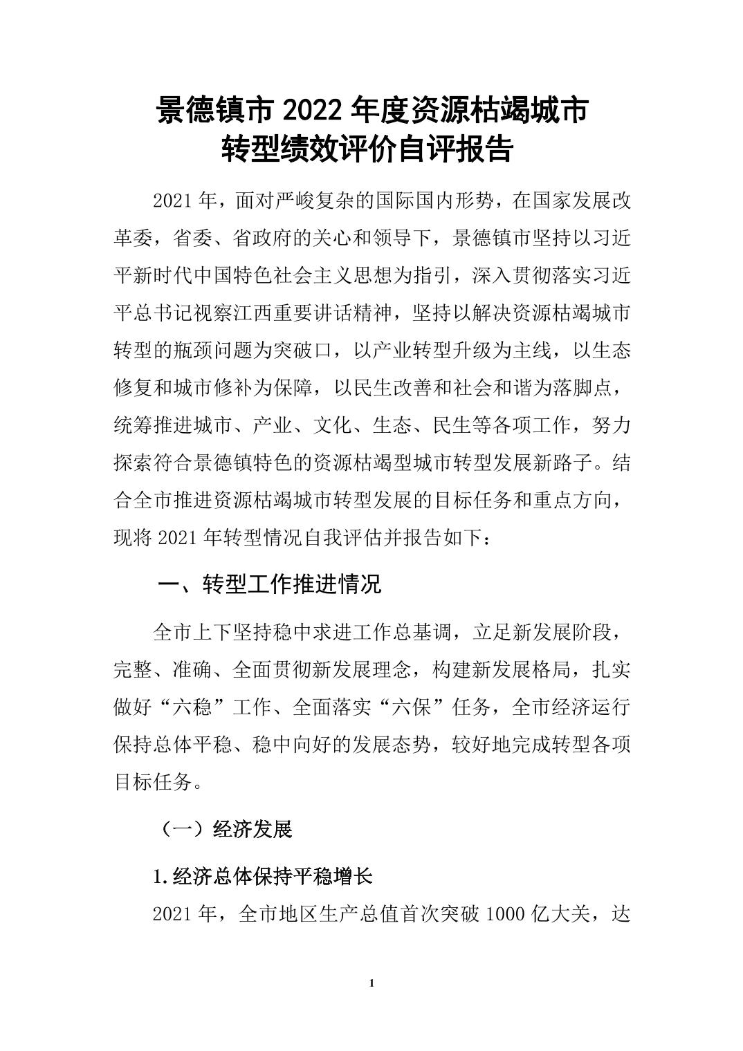 景德镇市2022年度资源枯竭城市转型绩效考核自评报告