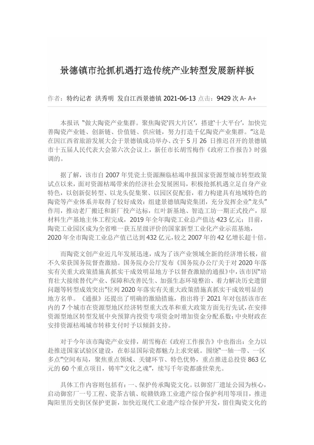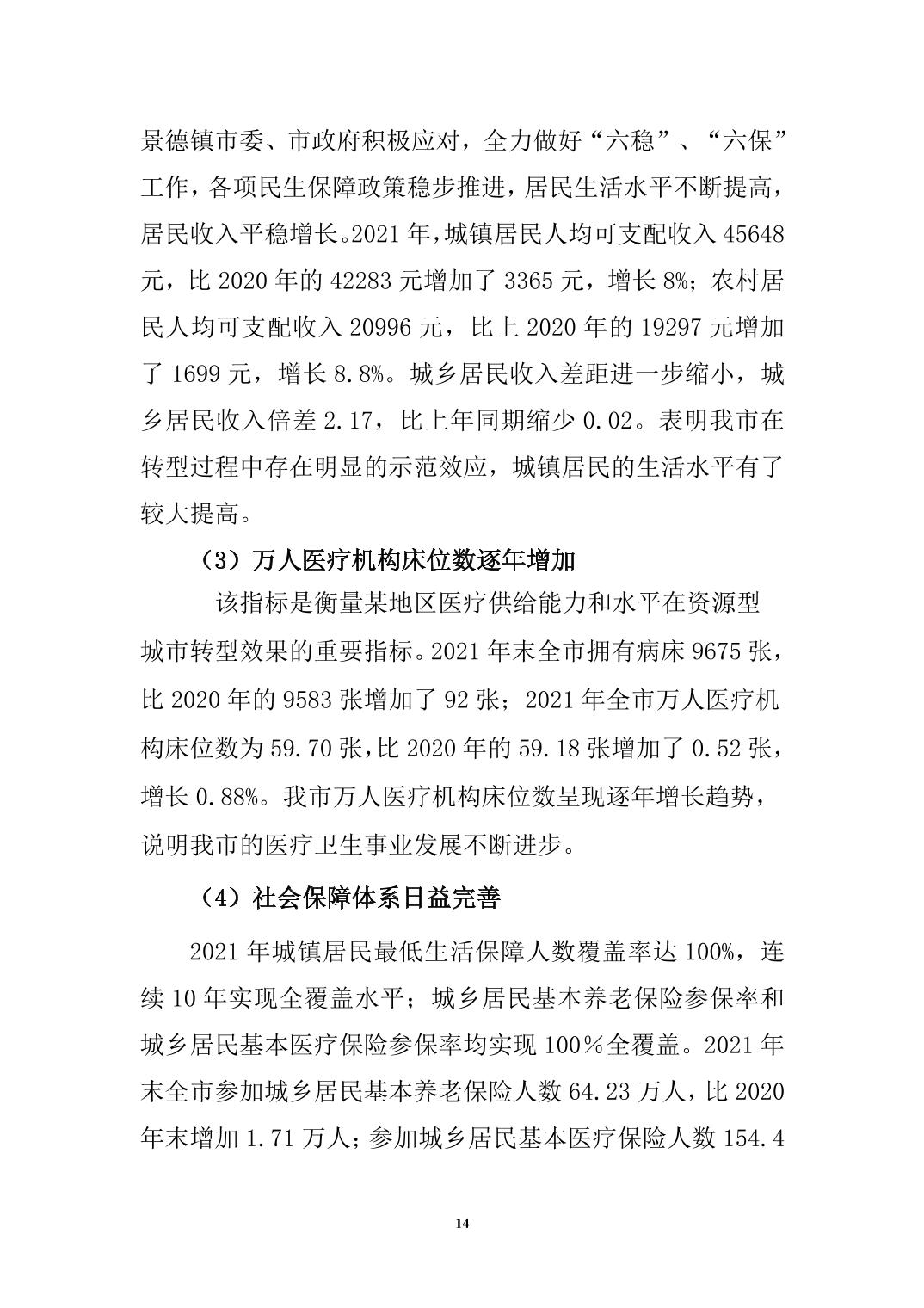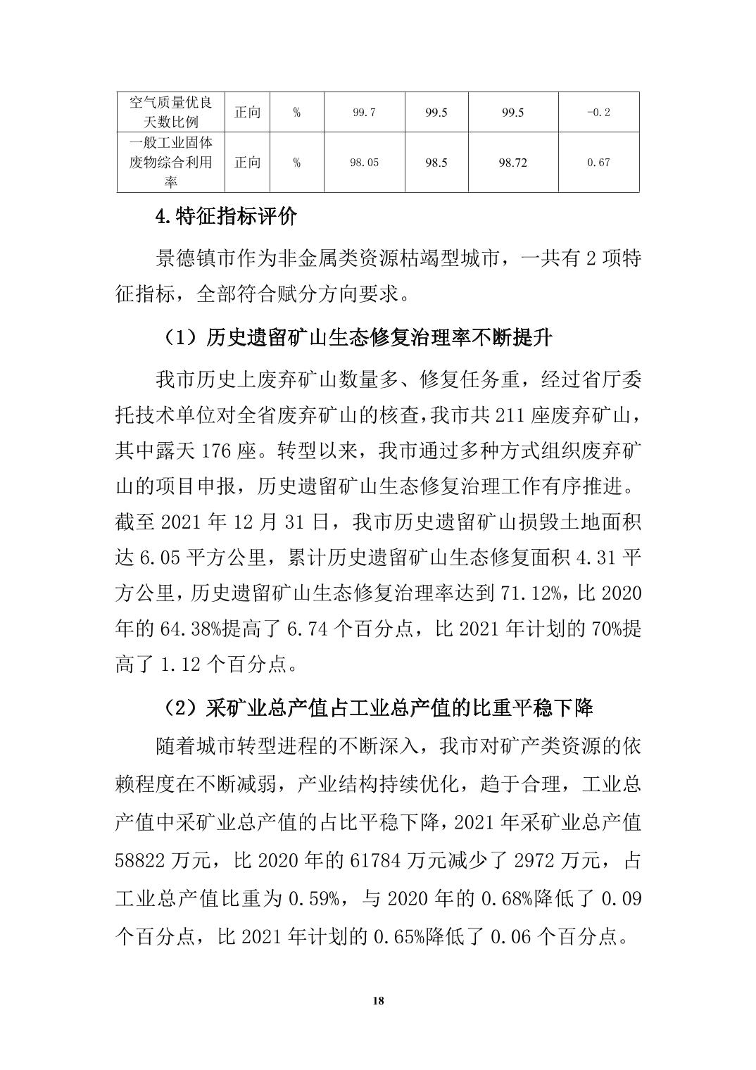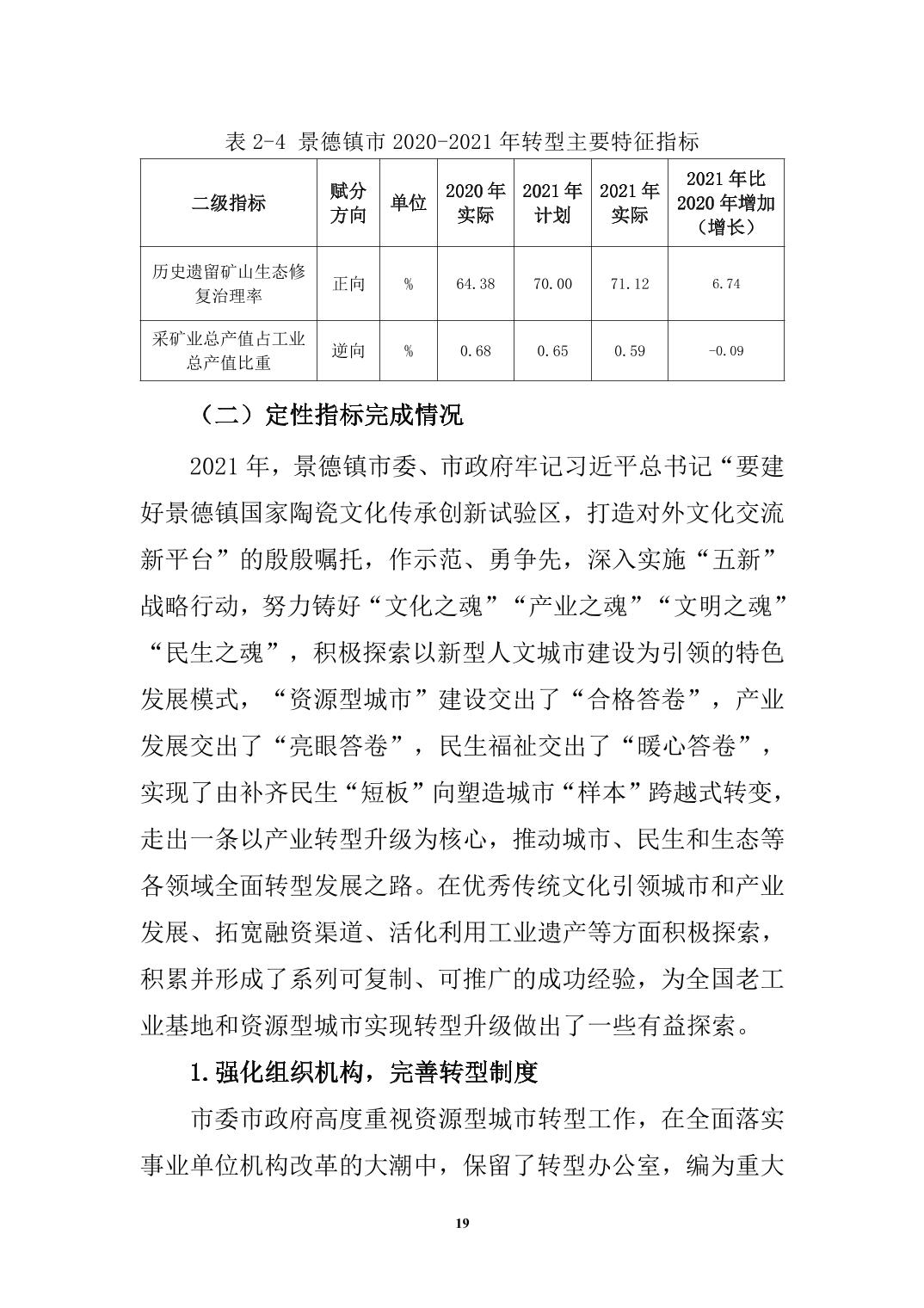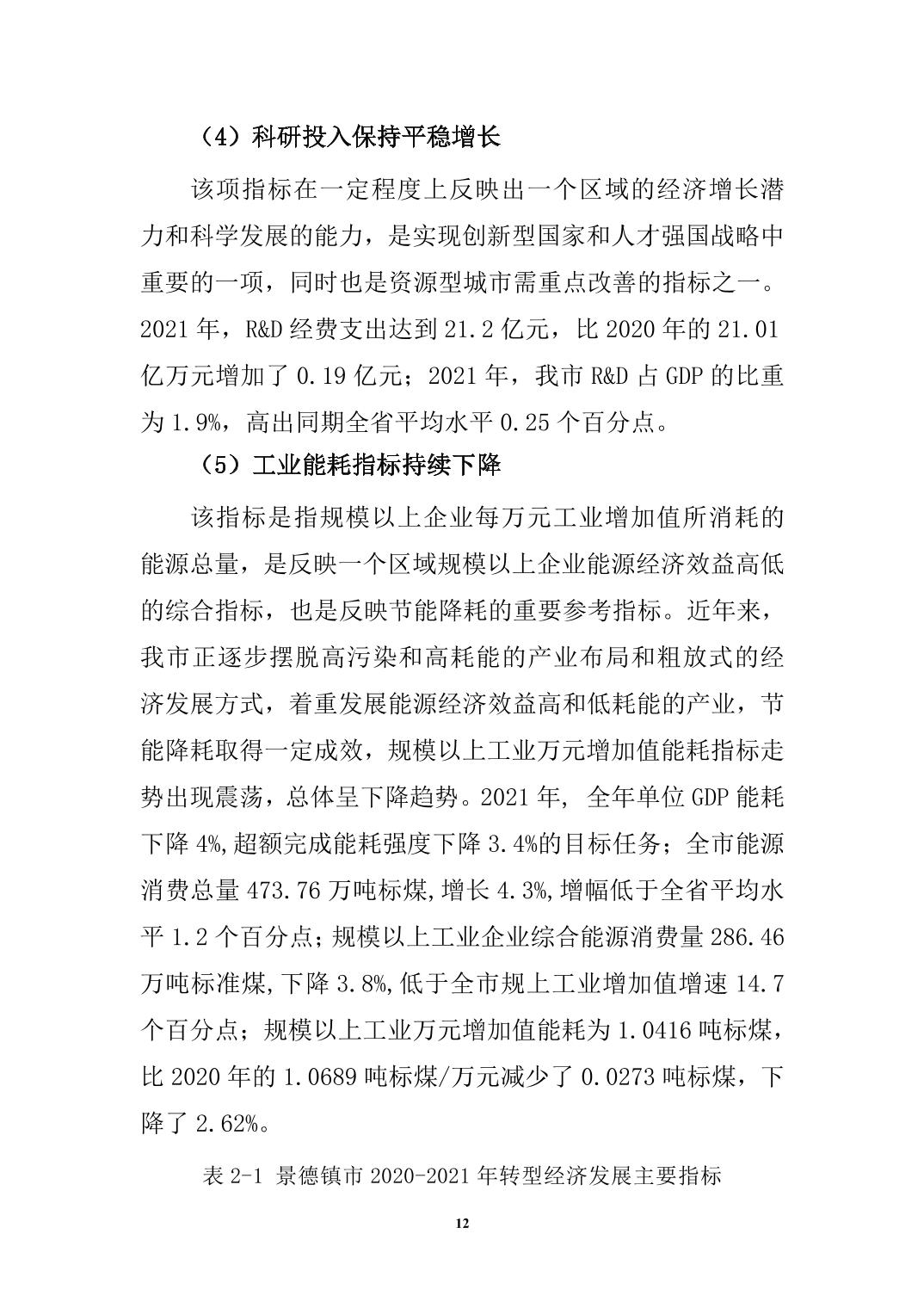 景德镇市2022年度资源枯竭城市转型绩效考核自评报告